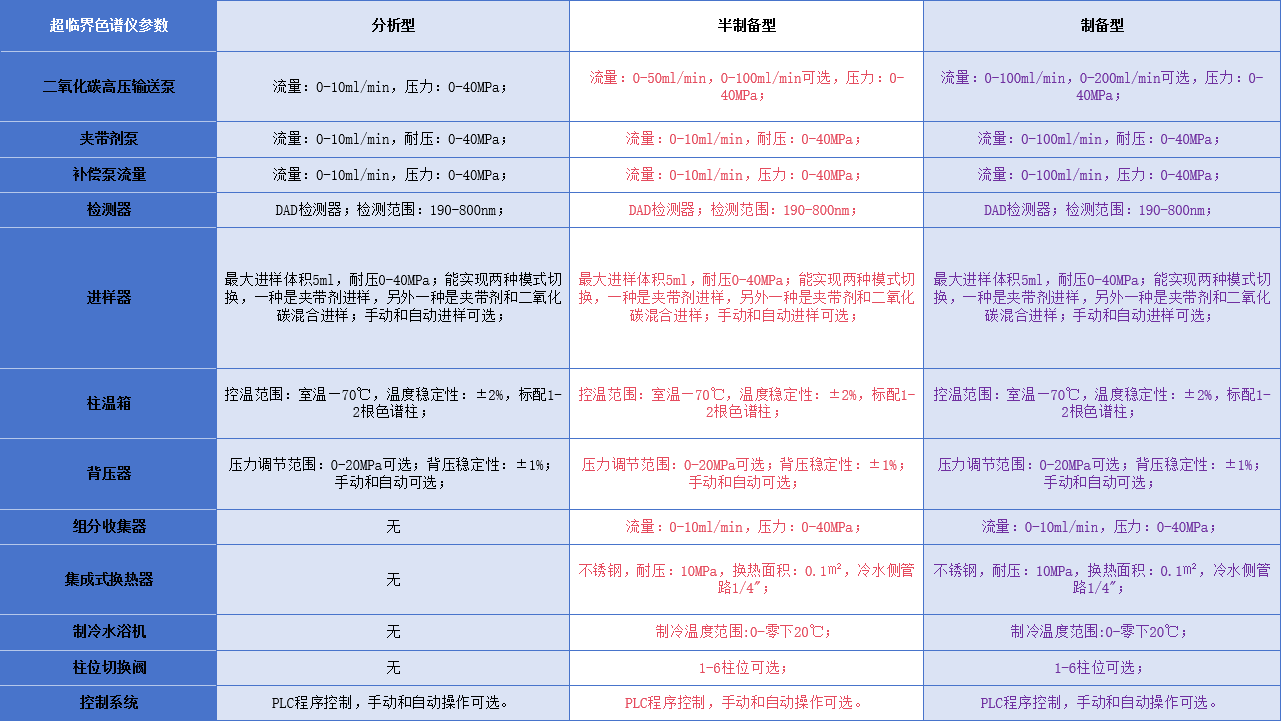 {"樣品池":"316L不銹鋼材質,帶藍寶石視窗和照明","氣路控制":"耐高壓閥門和管路,精確的流量控制,排氣流速≤10ml/min。","溫度控制":"電加熱和內置壓縮機制冷,自動溫控,精度:±1℃。","過濾系統":"內置和外置0.5um精度高壓過濾器。","耐高壓管路":"316L不銹鋼材質,精確設計,耐腐蝕和高壓。","臺式CO2高壓泵":"316L不銹鋼泵頭,藍寶石活塞,流速:0-100ml/min,壓力0 40Mpa ,內置預冷罐為壓縮機制冷,無需冷水機。恒流恒壓模 式可選,觸摸屏操作,壓力