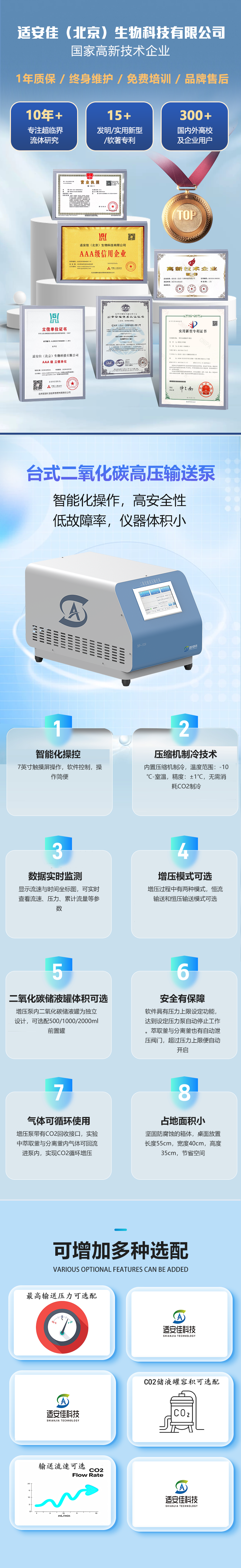 二氧化碳高壓輸送泵是一種將 CO2輸送和增壓的設備,主要作用是 CO2鋼瓶中的 CO2輸送到高壓釜中,并控制流速和壓力使得高壓釜實現所需的條件。二氧化碳高壓輸送泵的特點是可以提供 CO2的高壓輸出和穩定的流量輸出,并且占用用戶較小的空間。一般二氧化碳高壓輸送泵的工作壓力在 10-40MPa 之間,能夠滿足絕大多數用戶的需求。目前二氧化碳高壓輸送泵已經成為超臨界二氧化碳實驗中不可或缺的一種儀器設備。